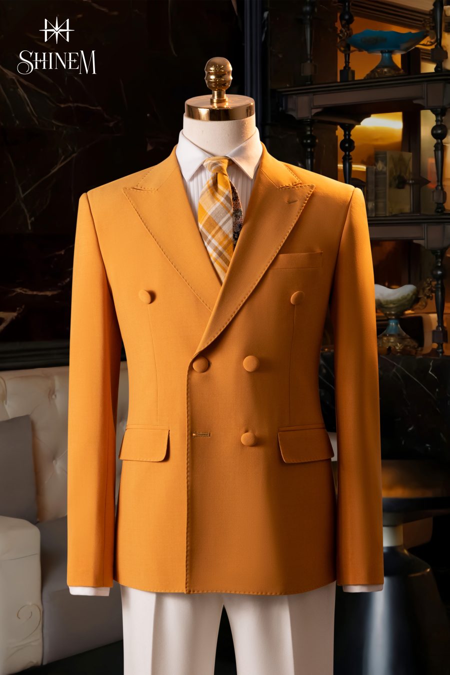 Mẫu suit vàng cam là lựa chọn dành cho quý ông yêu thích sự nổi bật và khác biệt, mang đến diện mạo ấn tượng ngay từ ánh nhìn đầu tiên. Gam màu vàng cam ấm áp không chỉ thể hiện sự trẻ trung, cá tính mà còn toát lên khí chất tự tin và gu thẩm mỹ thời thượng.